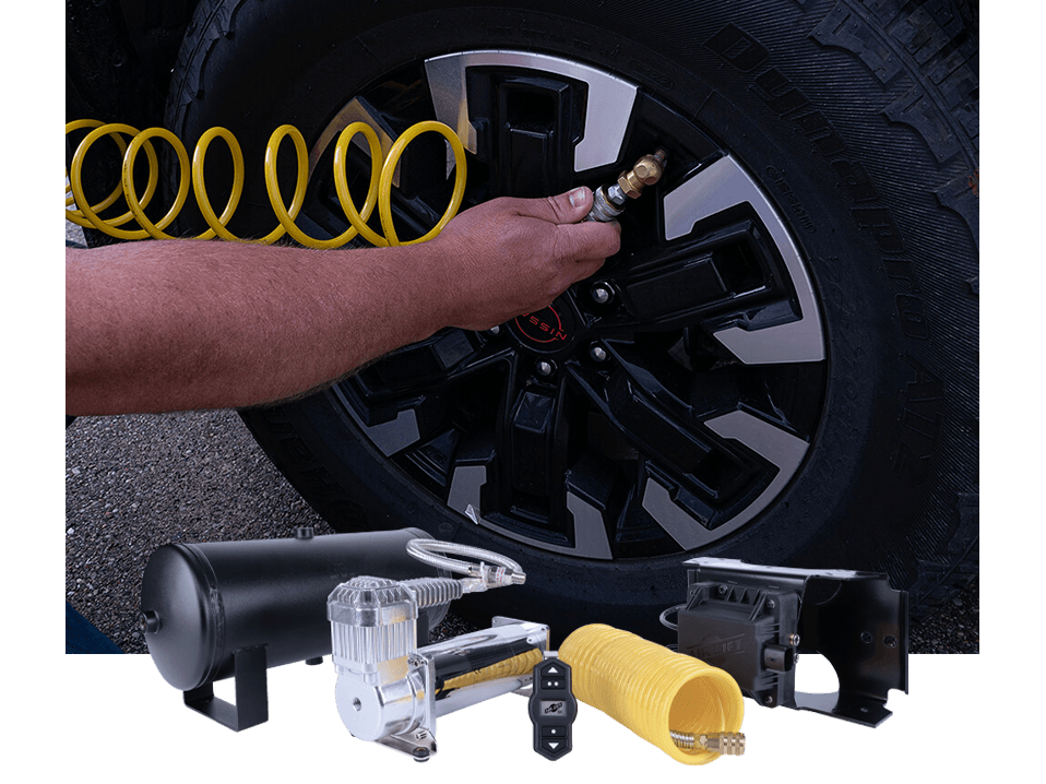 Three available systems to fit various needs. From a wireless controller and standard-duty compressor version to a full system with controller, HD compressor, and auxiliary air tank with coiled hose. Whatever your needs, we've got you covered.