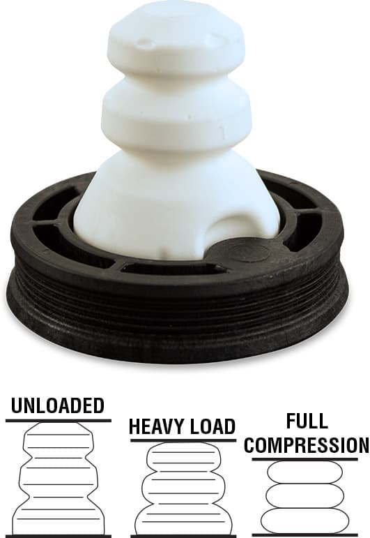 The jounce bumper in LoadLifter 5000 Ultimate provides an extra level of security to drivers who demand that their vehicle carry exceptionally heavy cargo or pull extremely heavy trailers and campers. The internal jounce bumper works to prevent bottoming out on harsh roads and makes rough transitions smoother, providing a smoother and more comfortable ride.